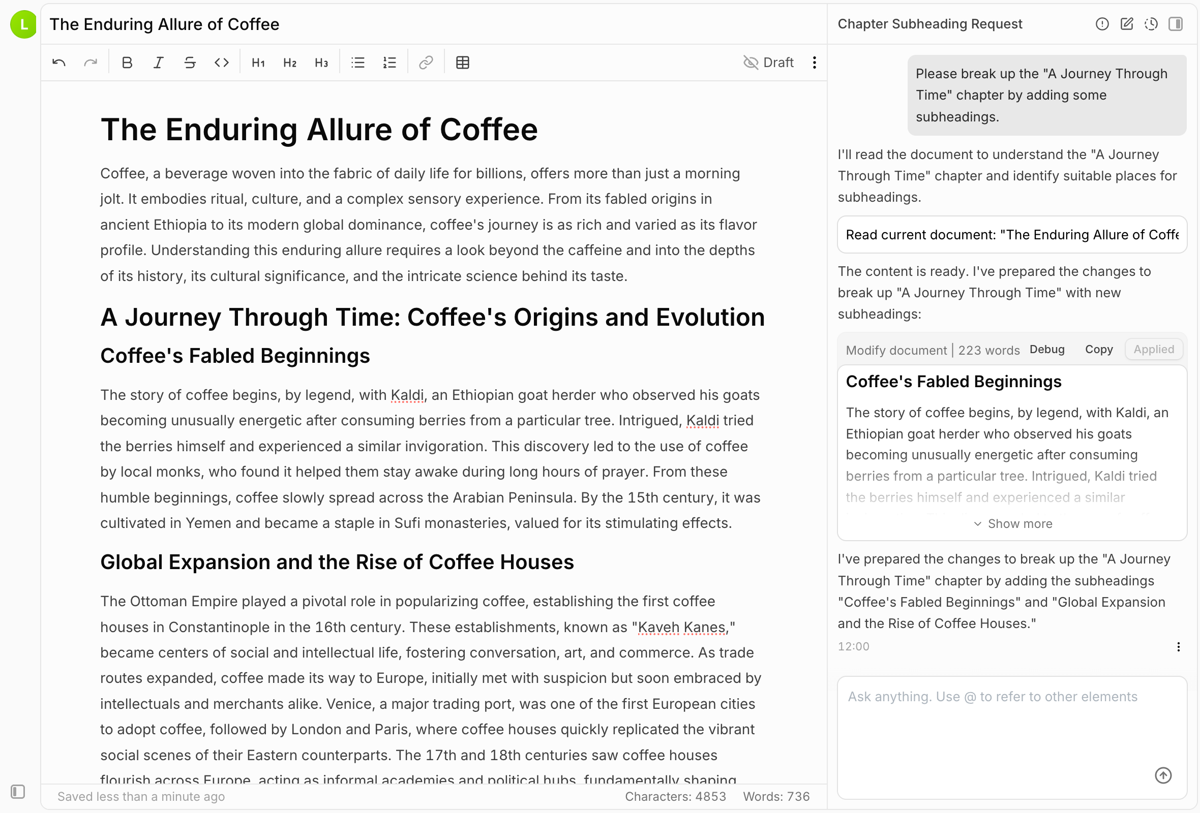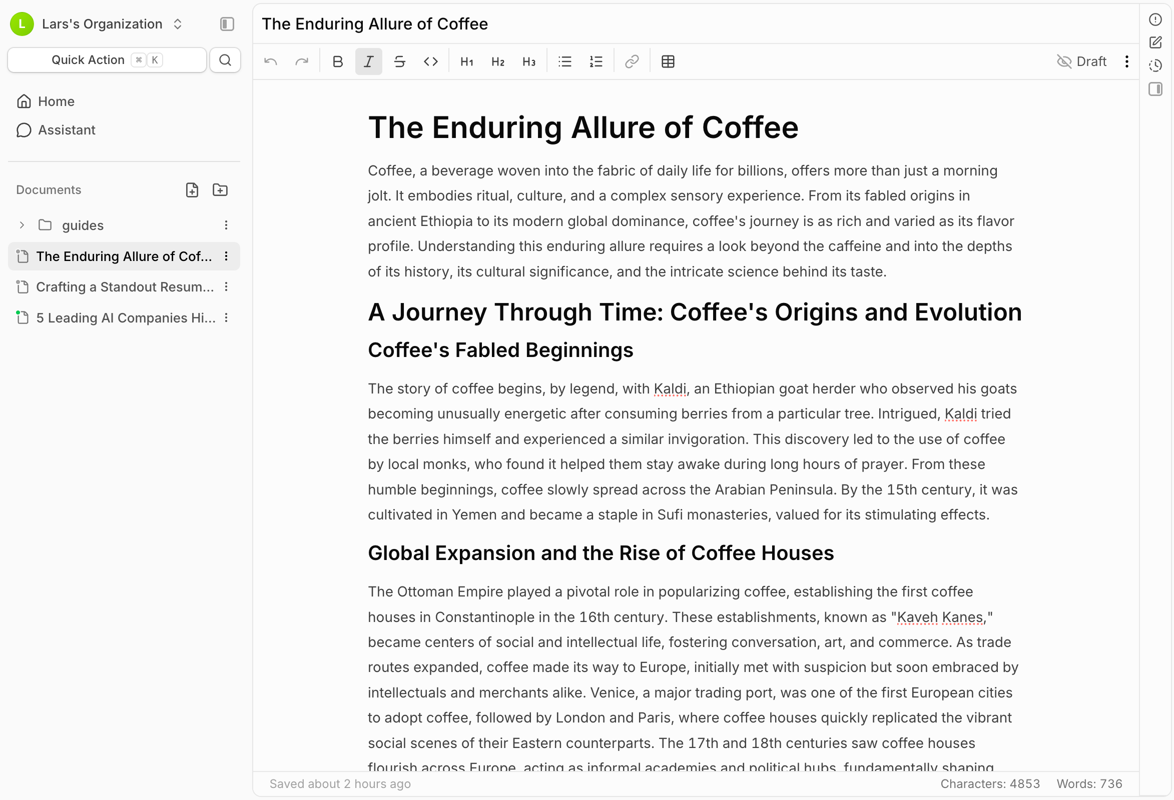 - Reference other documents with @mentions to connect ideas across your workspace