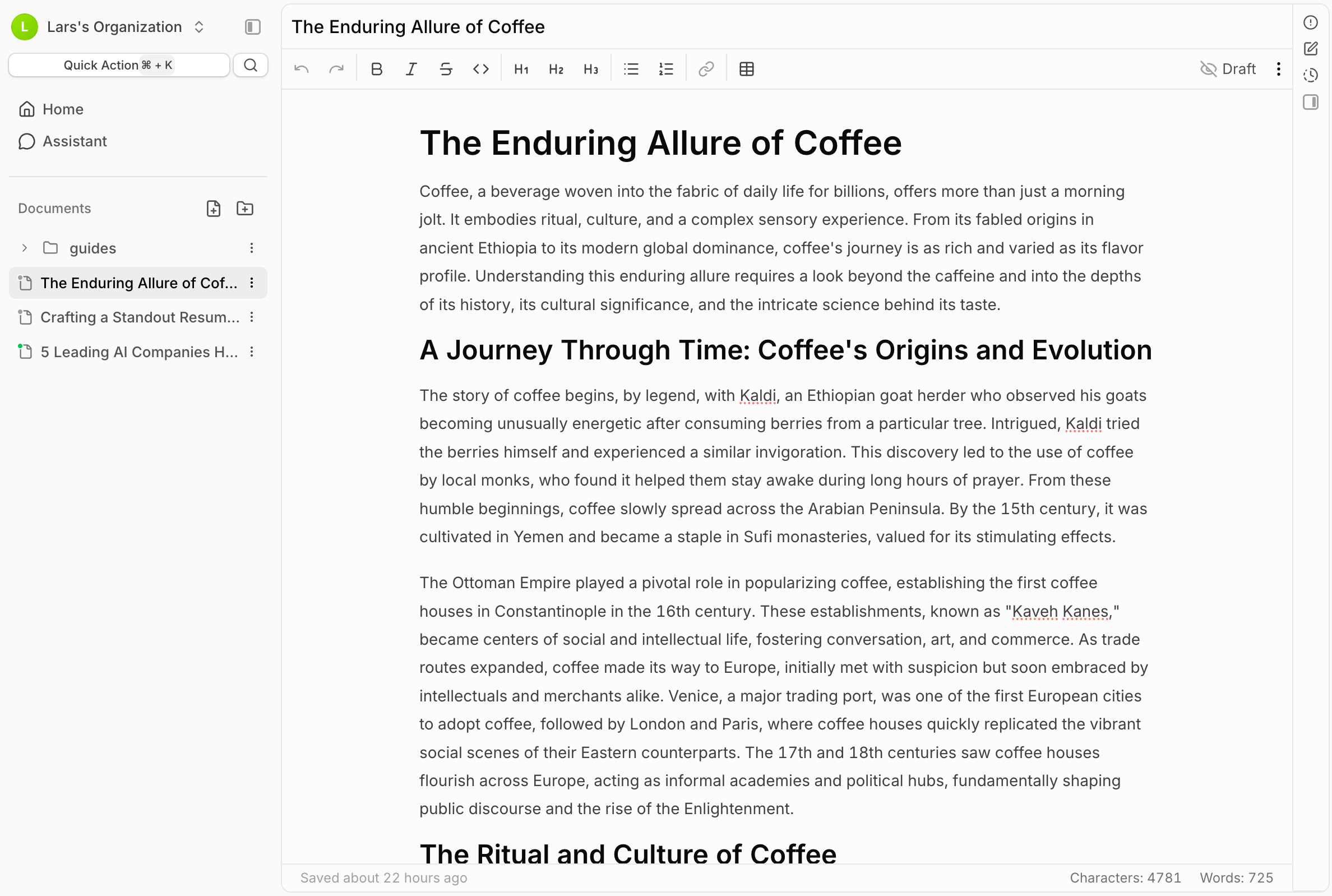 Autocomplete ideas, rewrite instantly, and stay in flow, from first draft to final polish.